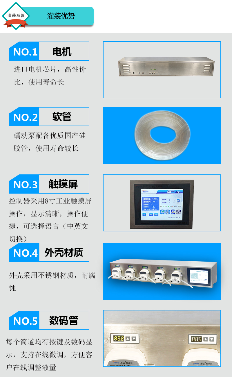 2.外殼采用不銹鋼材質,耐腐蝕。每通道均有按鍵及數碼顯示,支持在線微調,方便客戶在線調整液量。每個通道有獨立的缺瓶止灌功能