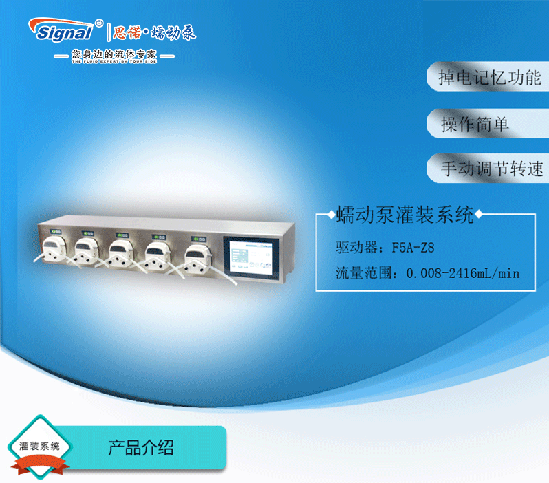 1.灌裝系統由5組基本通道(可擴展至32通道),一臺控制器組成,可安裝YZ15、YZ25泵頭