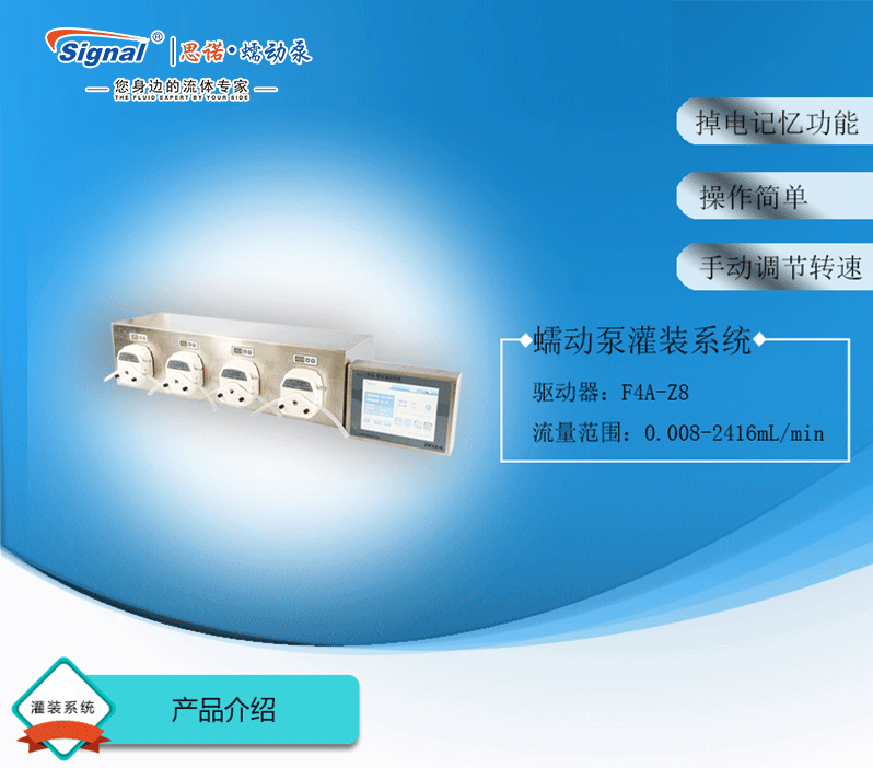 外殼采用不銹鋼材質,耐腐蝕。每通道均有按鍵及數碼顯示,支持在線微調,方便客戶在線調整液量。每個通道有獨立的缺瓶止灌功能