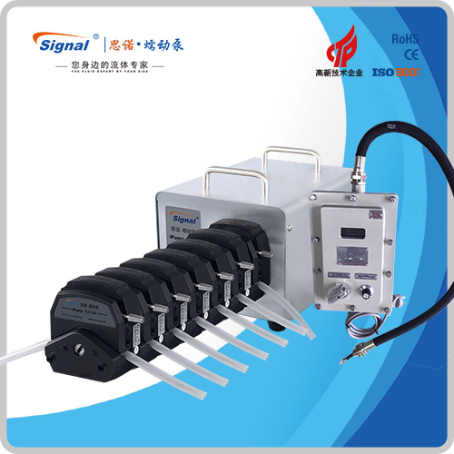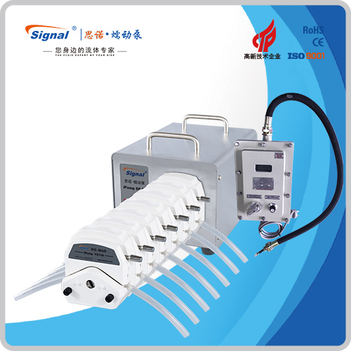 1.流量范圍:3-2416ml/min 2.免維護交流防爆減速電機驅動,變頻器調節轉速 3.電機扭矩大,可級聯雙泵頭 4.防爆等級DIIBT4,適合易燃易爆環境使用 5.304不銹鋼外殼,易擦拭,耐腐蝕,便于攜帶