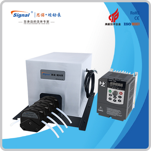 流量范圍:115.0-6061mL/min 免維護(hù)交流防爆減速電機(jī)驅(qū)動(dòng),變頻器調(diào)節(jié)轉(zhuǎn)速 電機(jī)扭矩大,可級(jí)聯(lián)雙泵頭 防爆等級(jí)DIIBT4,適合易燃易爆環(huán)境使用