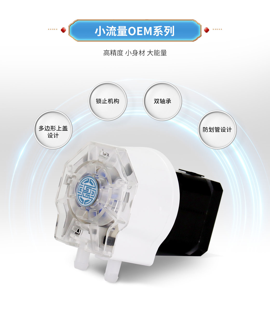 4.泵體防劃管設(shè)計(jì),提高軟管壽命。