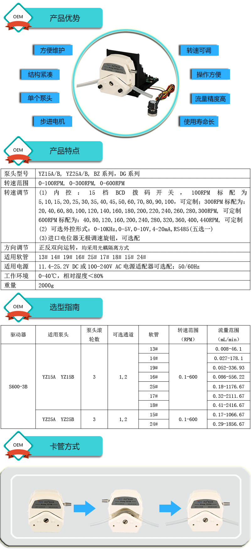 ? ? ?1.流量范圍:0.008-2416.67mL/min ? ? ?2.步進電機驅動,流量精度高達±1% ? ? ?3.轉速可調節,多種調速方式可選 ? ? ?4.多種結構可選 ? ? ?5.采用進口電機驅動芯片,性能優越 ? ? ?6.線路板全部三防漆處理,防腐、防潮?