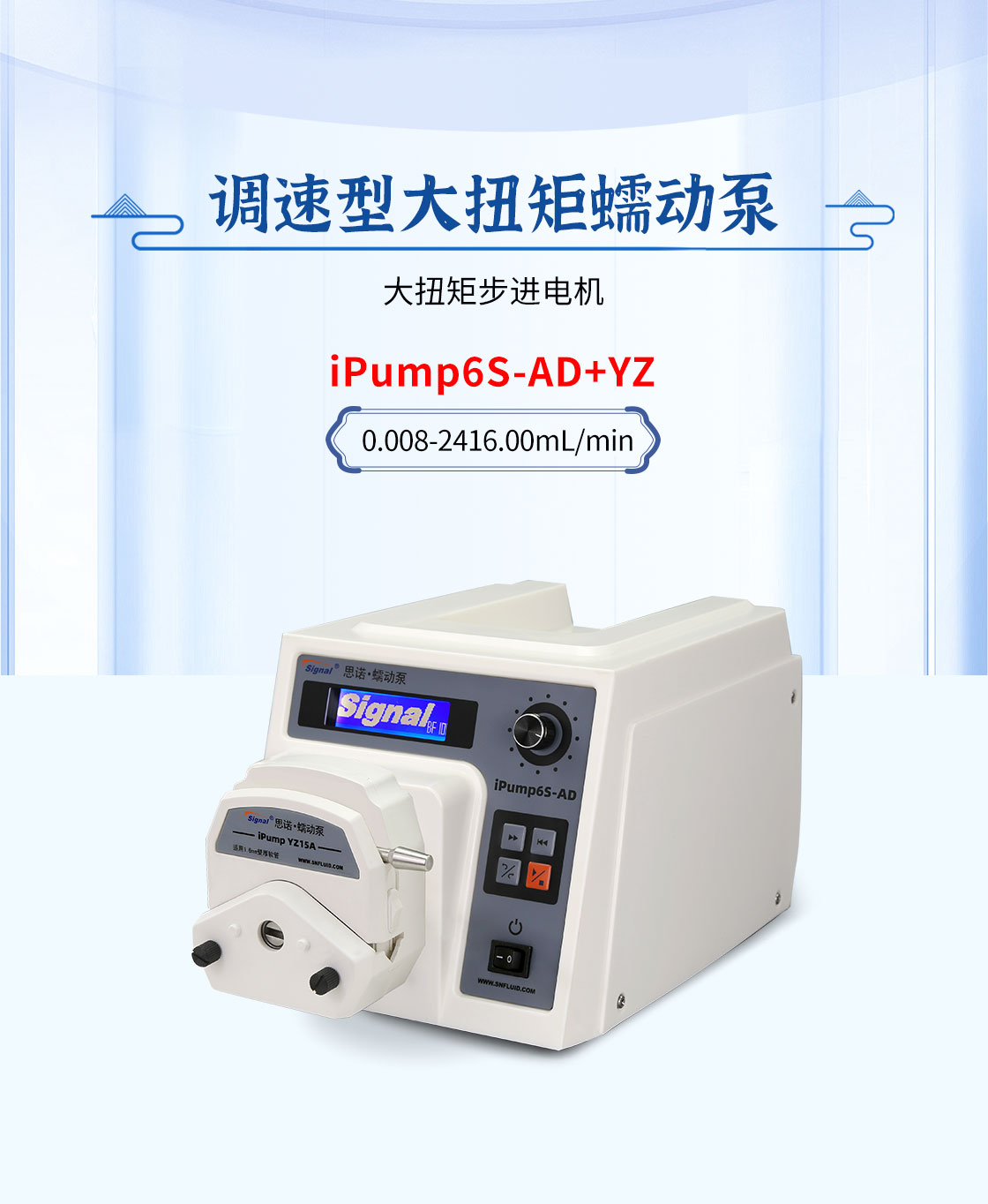 2.大扭矩步進電機驅(qū)動,適合多泵頭串聯(lián)使用;