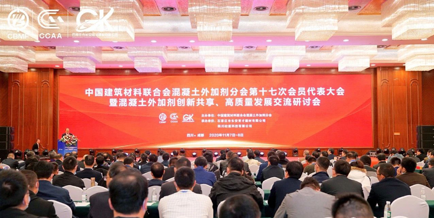 2020年11月7日上午,中國建材聯合會混凝土外加劑分會第十七次會員代表大會在美麗蓉城——成都盛大開幕,會場內座無虛席,氣氛隆重而熱烈。
